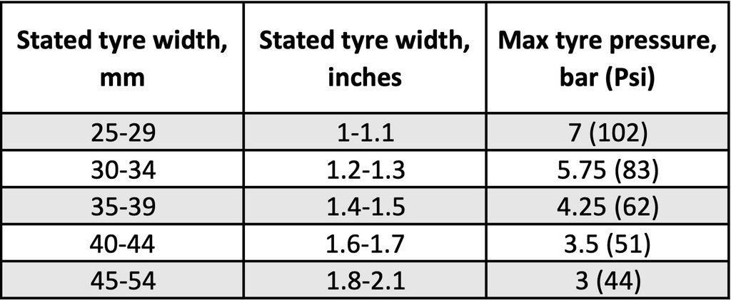 Tyres InfoHUNT recommends a 38mm tyre for best performance, tyre widths between 25mm and 54mm are also safe to use. Note: best performance is usually gained by using tyre pressures lower than the maximum, you can see our blog post about this, read here. Tubeless-ready for lower weight and rolling resistance. You must not exceed the maximum tyre pressure limits set out in the table below or the maximum limit set by your tyre manufacturer if this is lower.